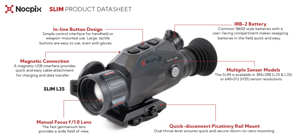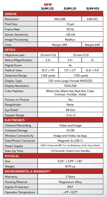 If you’re looking for both a thermal handheld monocular and a thermal weapon sight, the SLIM deserves serious consideration—especially if you’re on a budget. At $2,000 for the 384-resolution model and $3,000 for the 640-resolution model, it offers tremendous value.
